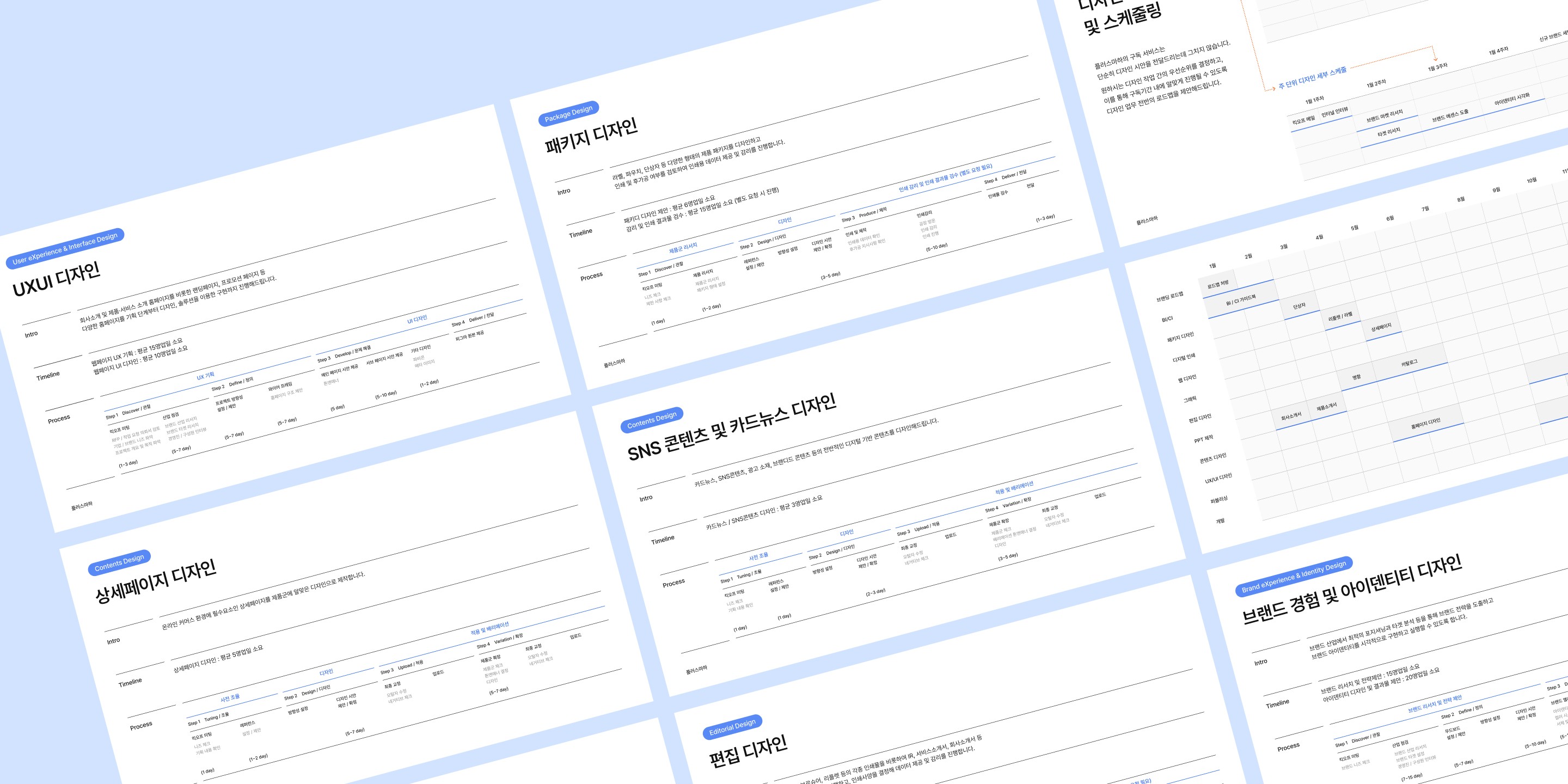 각 영역을 다른 업체가 맡을 경우 톱니바퀴처럼 맞물려야 하는 전체 구조가 쉽게 무너집니다. 디자인은 단순히 ‘생산’이 아니라, 전체 톤과 일정을 관리하는 업무입니다.