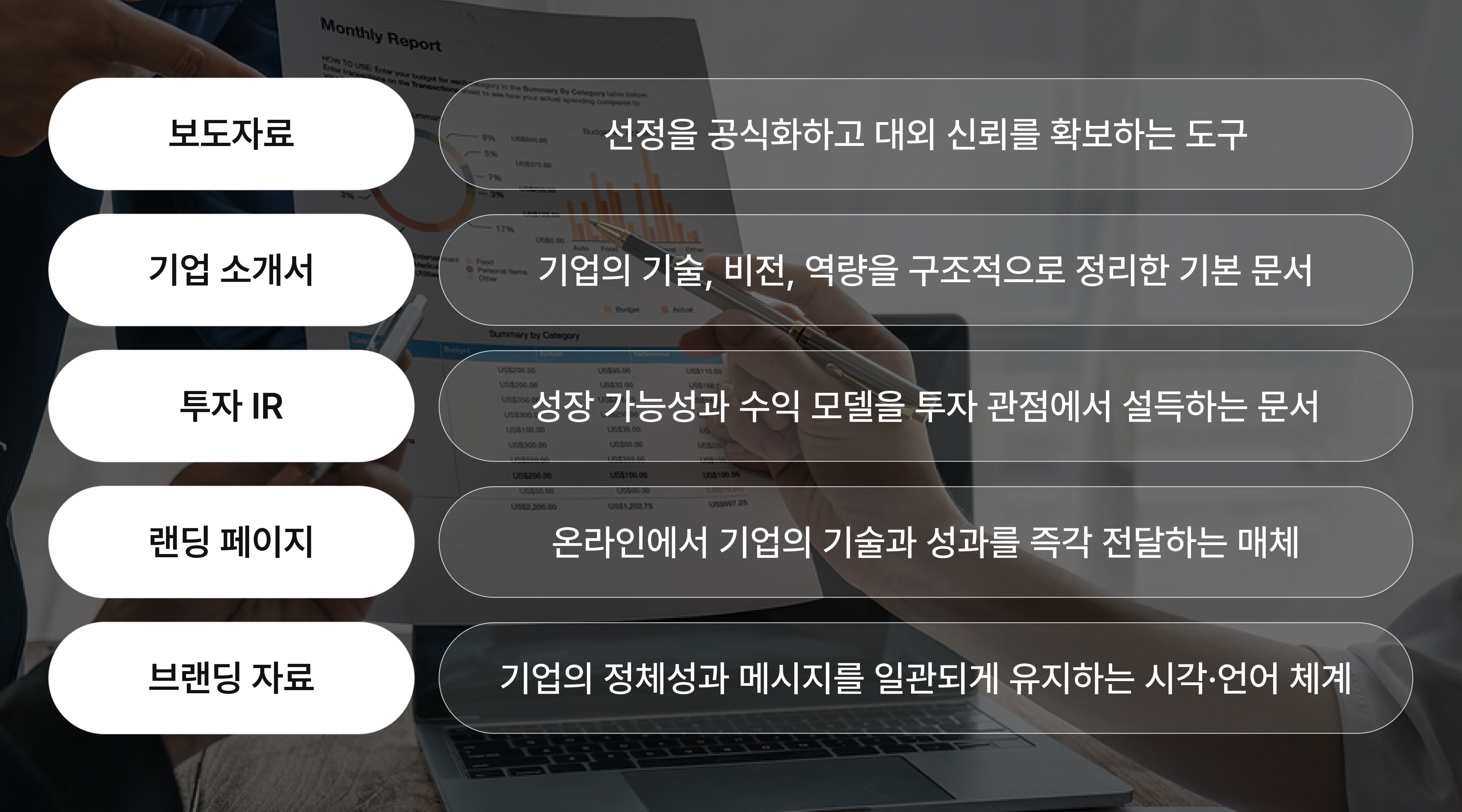 사업계획서, 발표 자료, IR, 홍보 콘텐츠를 하나의 전략 구조 안에서 관리하는 작업은 단기간에 완성되지 않습니다. 이는 기업의 기술과 비전을 일관된 메시지로 정리하는 장기적 과정입니다.